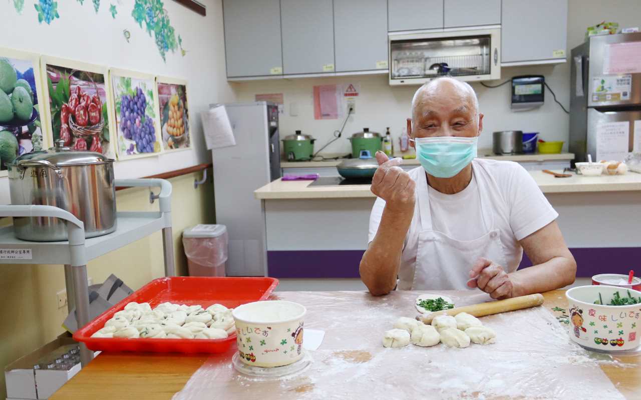 迦南護理之家九十六歲趙伯伯曾經是廚師,平時會把護家一樓開心農場採收的菜和雞蛋烹煮成佳餚,為同樓層的長輩加菜。為了臺東縣樂齡健康長照園區簽約典禮,特地動手做蔥油餅、水煎包、茶葉蛋,作為當天的茶點。
