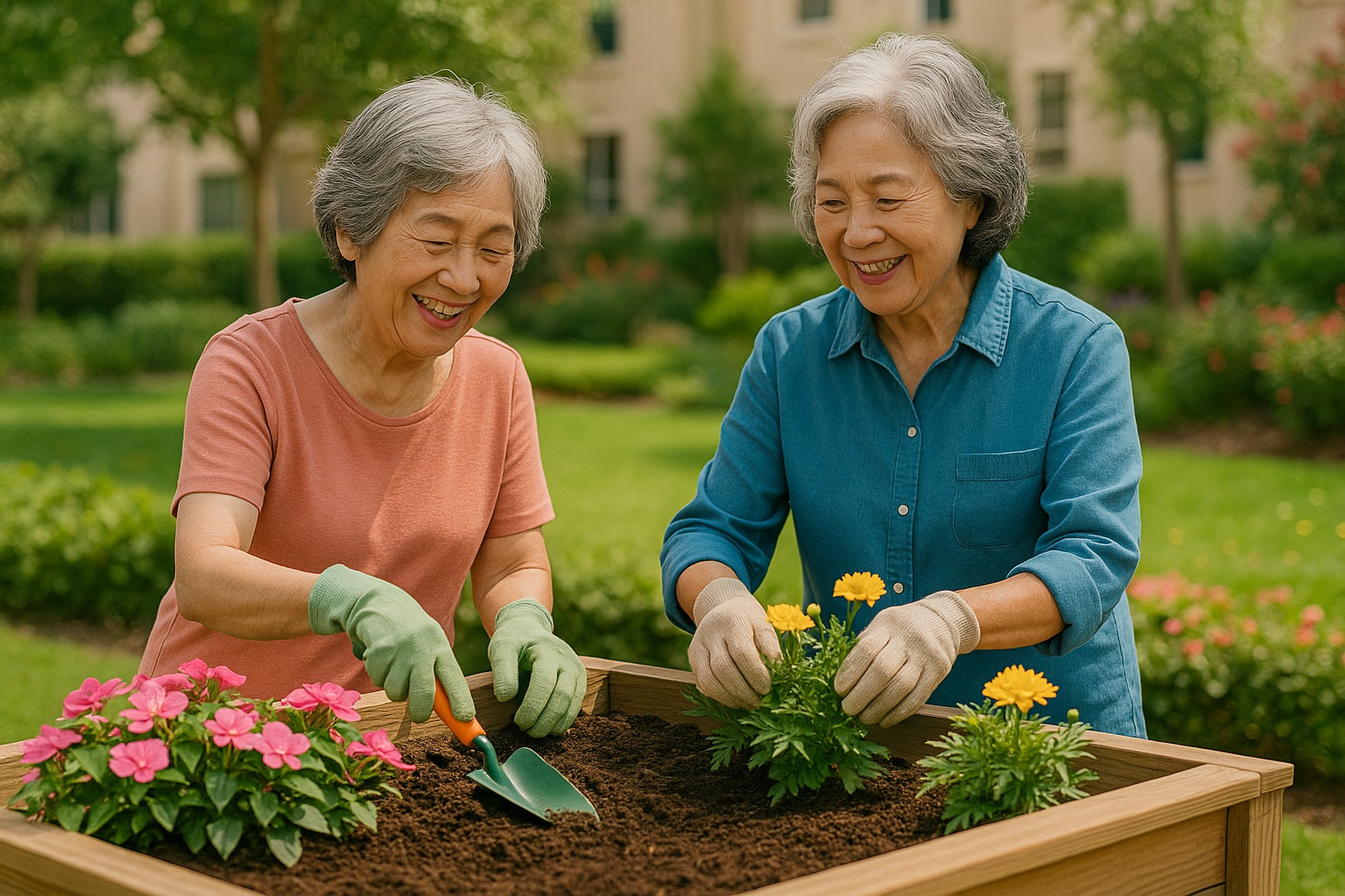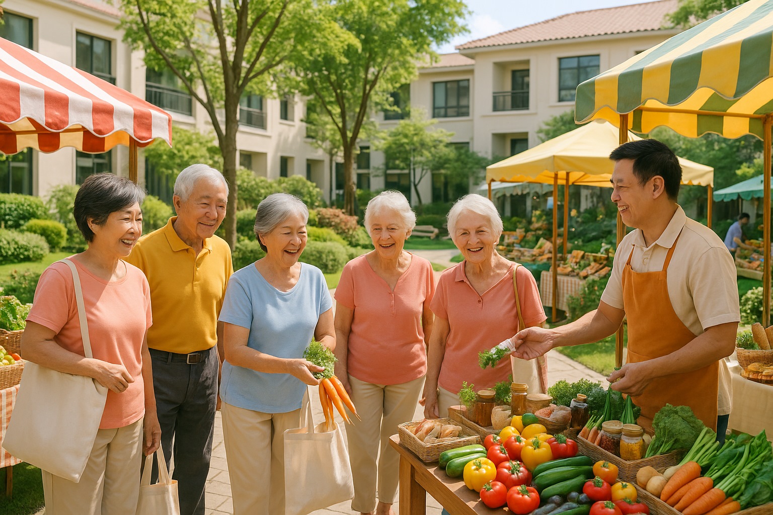 社交,是健康老化的重要元素。我們特別設計了促進社交的公共空間,例如湖畔餐廳、交誼廳、遊戲室、花園、菜園與戶外步道,讓住戶能自在地與鄰舍互動,共同分享日常生活。不定期舉辦的音樂會、季節慶典、小農市集、縣內小旅行與志工服務機會,也讓生活充滿期待與參與感。