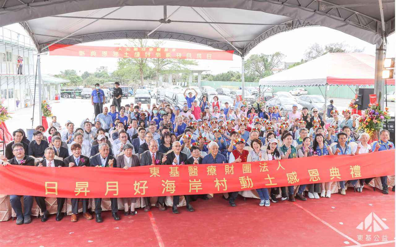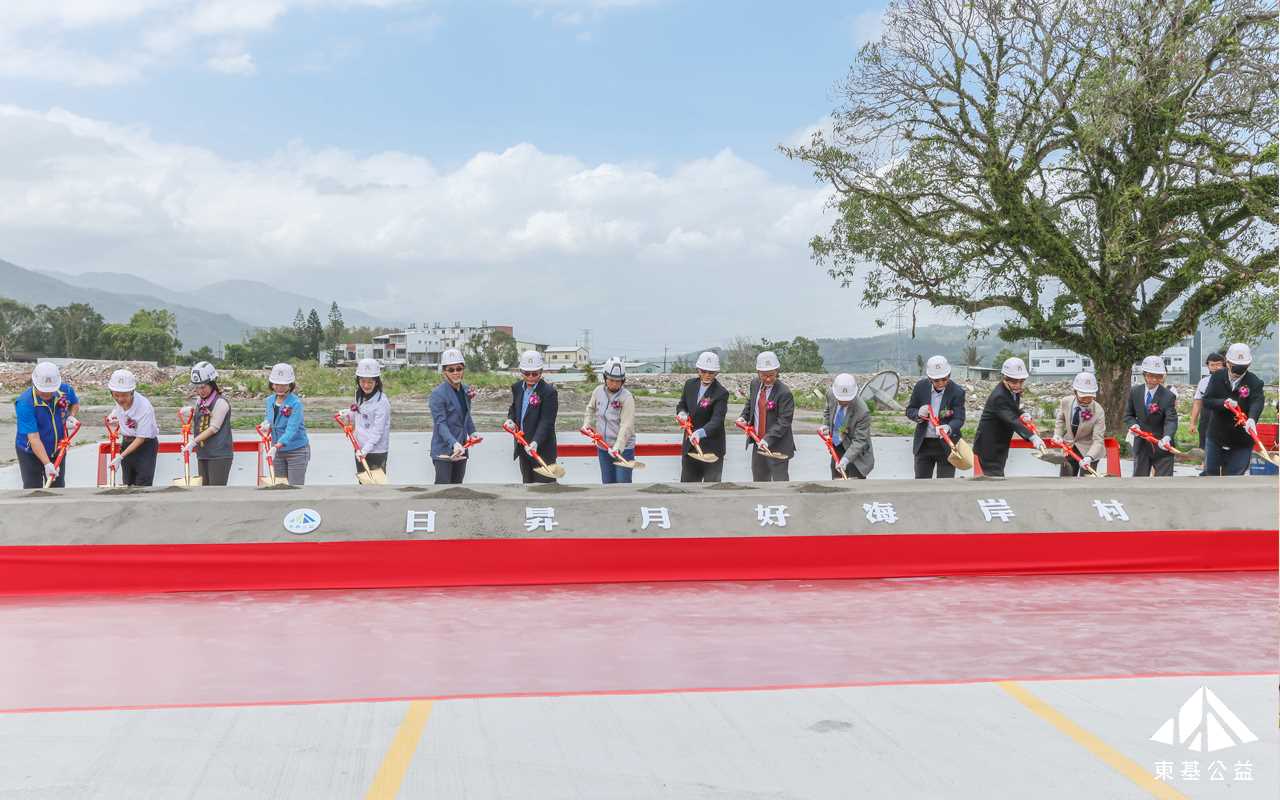 東基醫療財團法人董事長劉偉民、執行長呂信雄,財政部國有財產署署長曾國基,台東縣長饒慶鈴、前縣長黃健庭、縣議會議長吳秀華,卑南鄉長郭宗益及多位地方仕紳,一起為日昇月好海岸村動土。