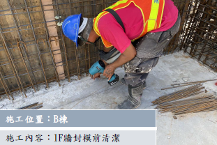 A棟1F樑模板組立自主檢查完成、B棟1F柱模板組立施工查驗完成